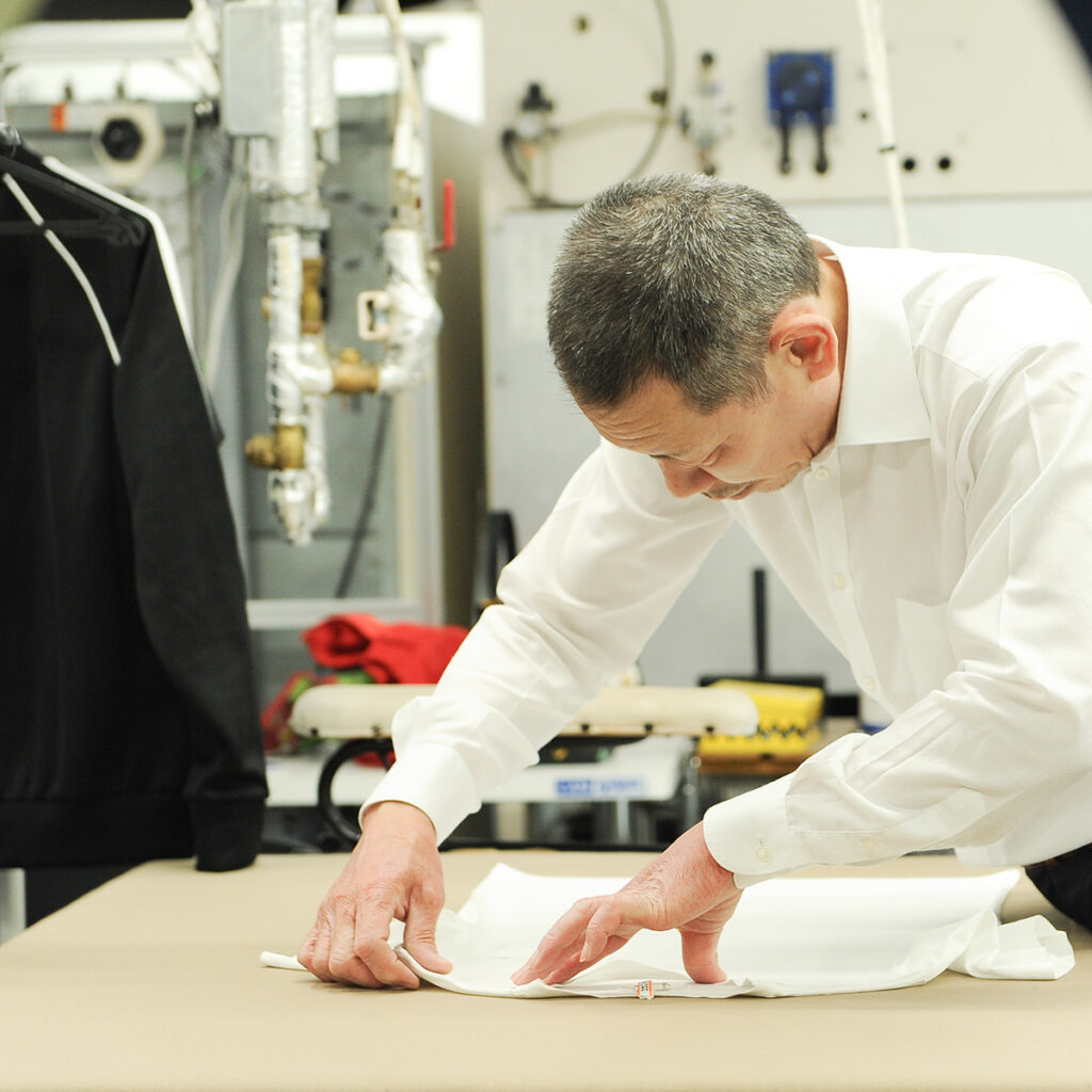 お預かりしたご衣類を、1点1点手作業にて検品し、素材や汚れに合わせた洗い方を取り入れておりますので、他社では難しい素材でも当社では独自の洗剤配合で風合いや質感を損なうことなく洗い上げます。一般的なクリーニングでは得られない「肌触りの良さ」「匂い」「軽さ」そして何より「キレイな仕上がり」をご体感ください。
